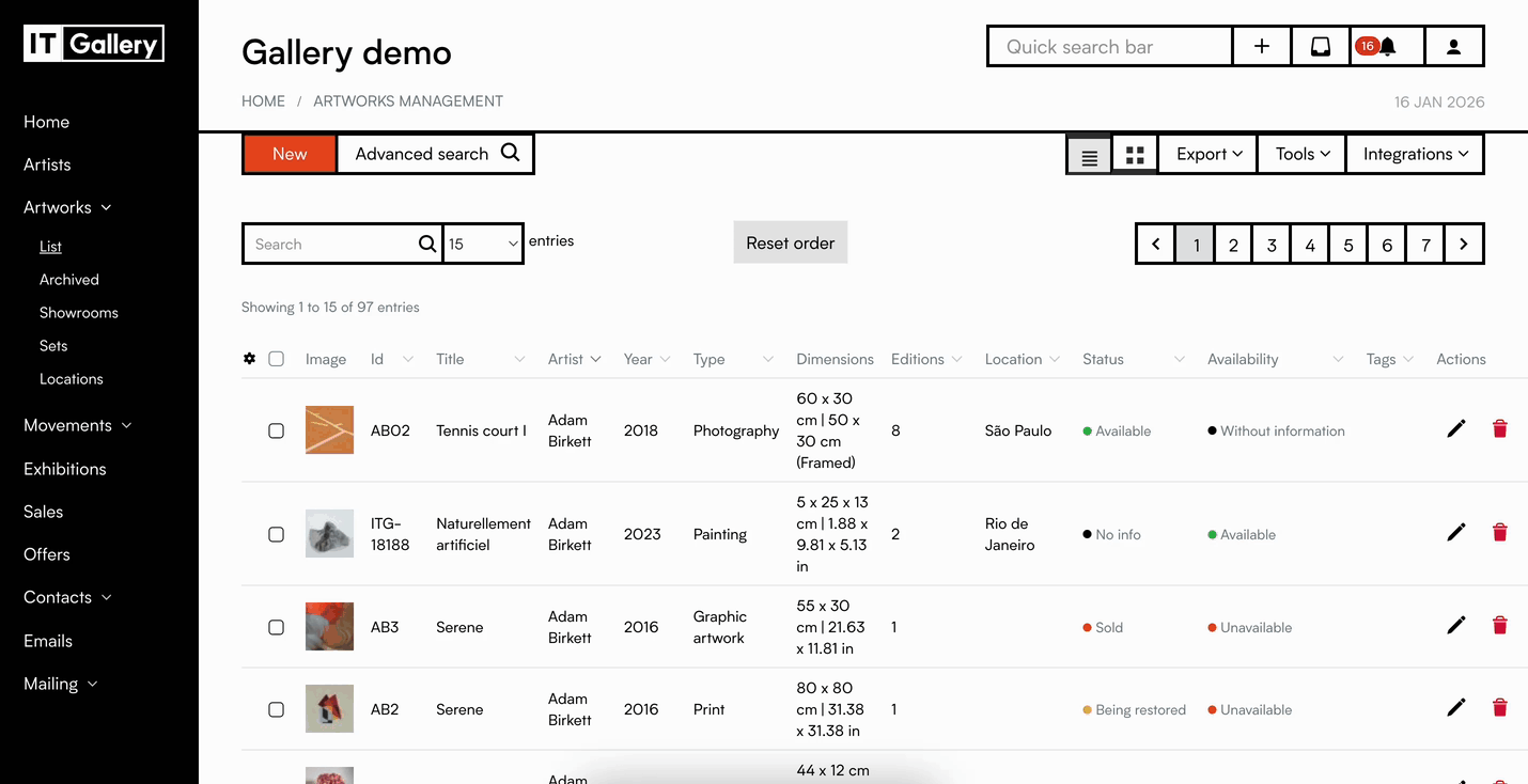 - Click on the 'Advanced search' button, located in the upper left part of the artworks list