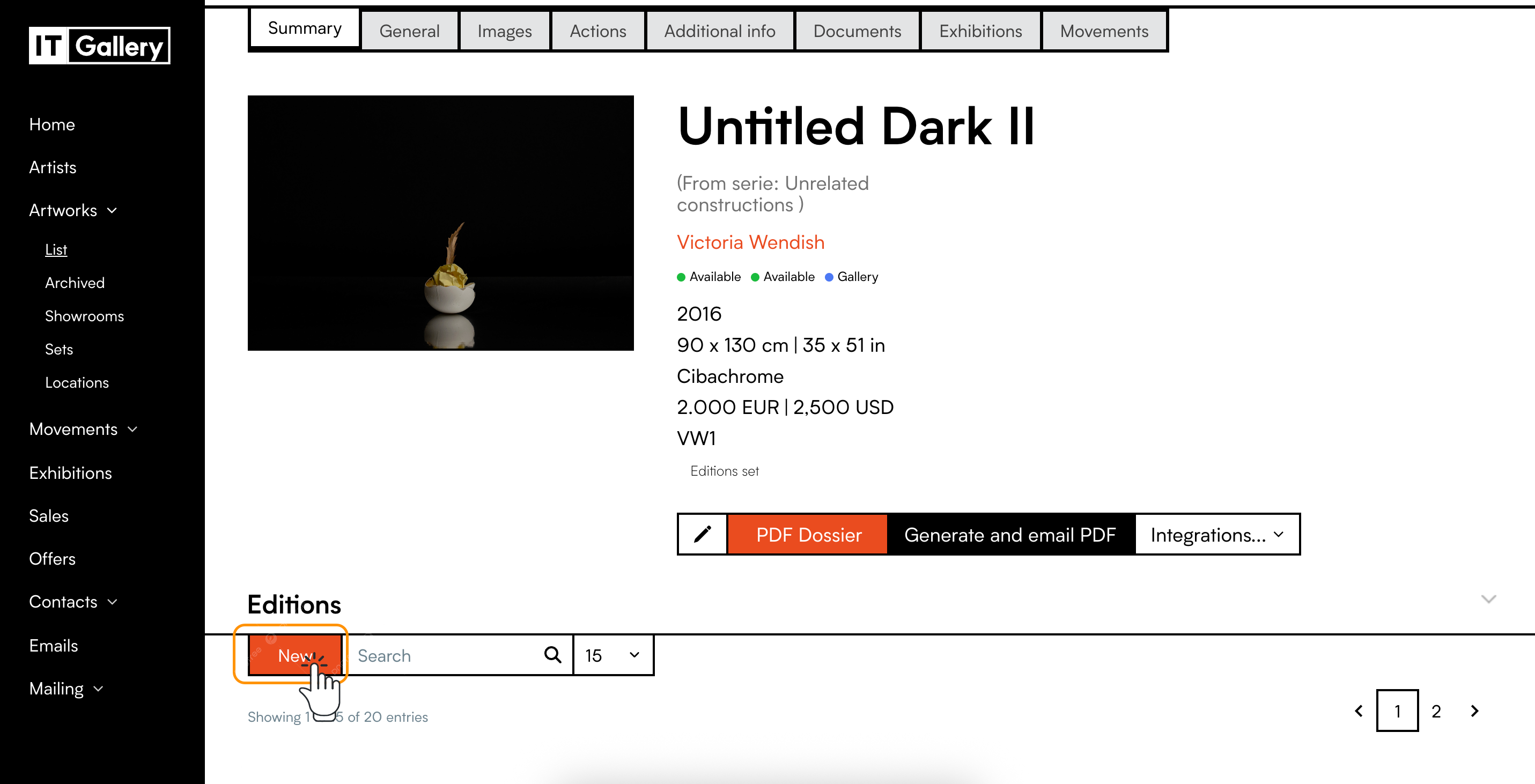 - In the 'number of editions' field, record the number of editions that the artwork has